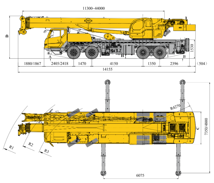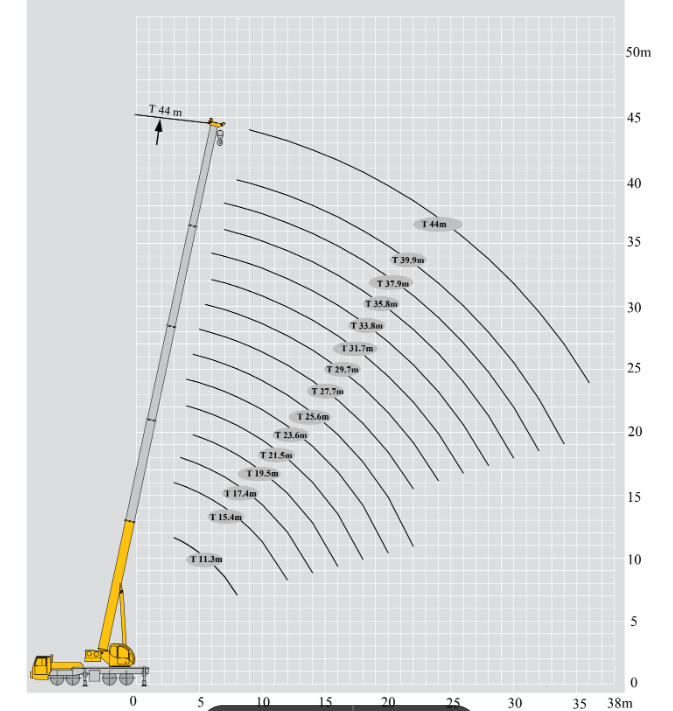 Cần chính dài tới 44m, đáp ứng được các công trình có độ cao lớn