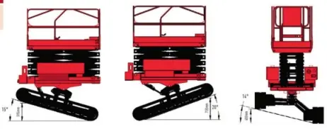 ● Khung gầm bánh xích có khả năng cân bằng thiết bị trên các bề mặt có độ cao so le.