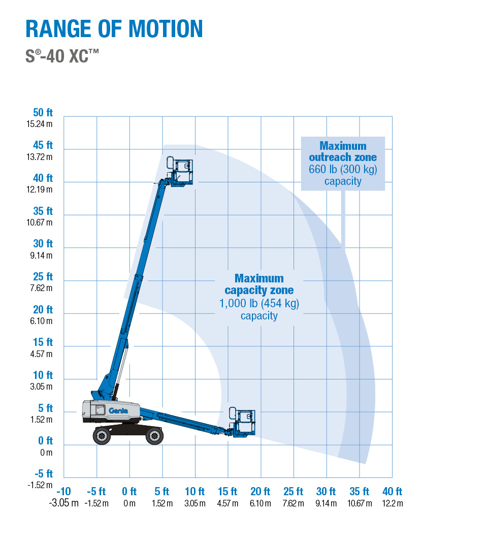 Với khả năng vươn thẳng và tầm với ngang lên đến gần 10m, Genie S-40 cho phép người vận hành tiếp cận các vị trí khó một cách dễ dàng mà không cần di chuyển nhiều lần.
